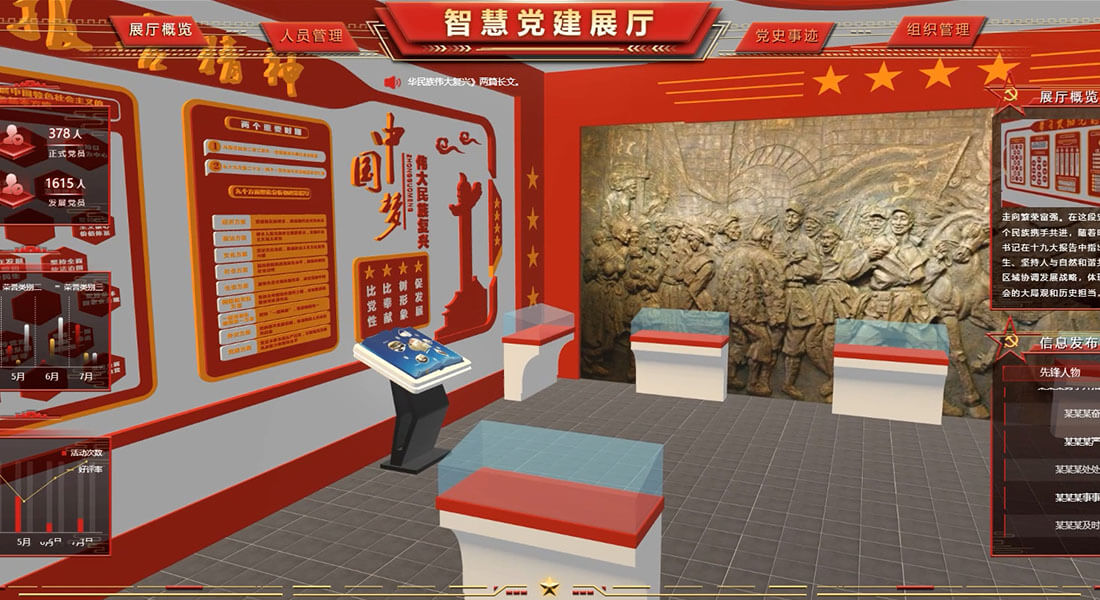 随着科学技术的不断进步,VR展厅的应用范围也越来越广泛:不仅可以实现场景还原、实境模拟、立体展示等传统展厅难以做到的表现形式,让人耳目一新;而且可以通过后台管理系统进行更新升级和数据统计,助推各行各业高速实现数字化转型的第一步沉浸漫游
